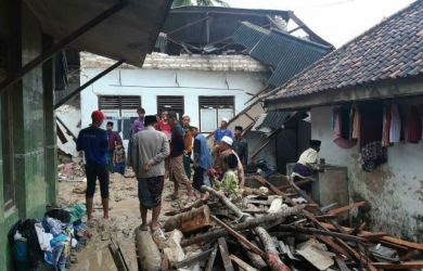 PAMEKASAN- Hujan deras disertai angin kencang memicu terjadinya longsor di Desa Bindang, Kecamatan Pasean, Pamekasan, Rabu dini hari (24/2).
