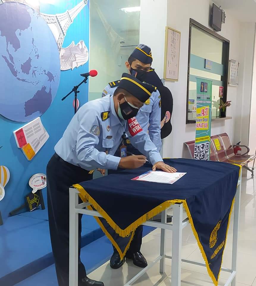 Makassar – Dodi Karnida Kepala Divisi Keimigrasian mewakili Kakanwil Kementerian Hukum dan HAM Sulawesi Selatan, memimpin apel pagi di Kantor Imigrasi (Kanim) Makassar pada Senin (25/01/2021). Kegiatan ini sekaligus dalam rangka penyematan kepada pegawai, pin predikat Wilayah Birokrasi Bersih dan Melayani (WBBM) yang telah diraih Kanim Makassar tahun 2020.