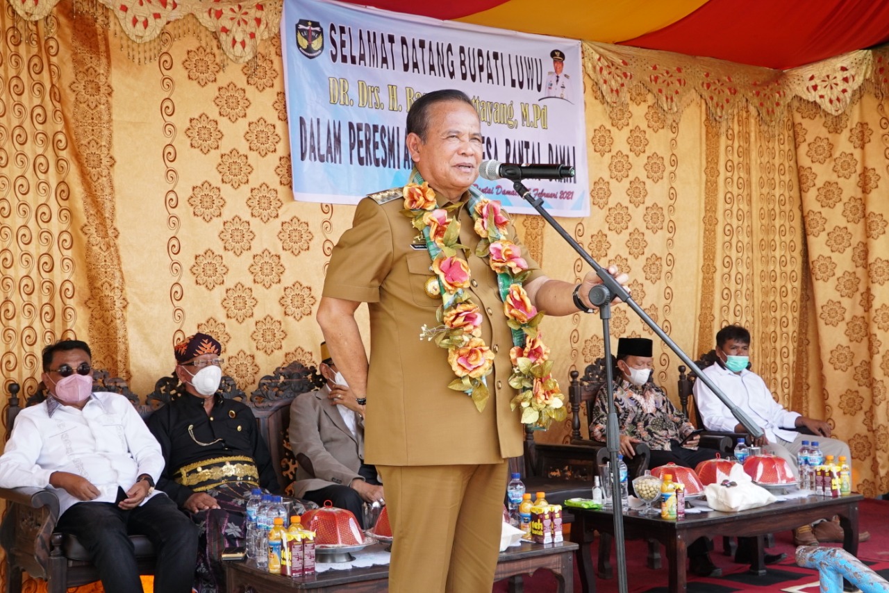 LUWU – Bupati Luwu, Dr H Basmin Mattayang meresmikan pembangunan gapura atau gerbang desa yang menelan anggaran senilai Rp. 176 Juta lebih di Desa Rantai Damai Kecamatan Walenrang Timur, Kamis (25/2/2021).