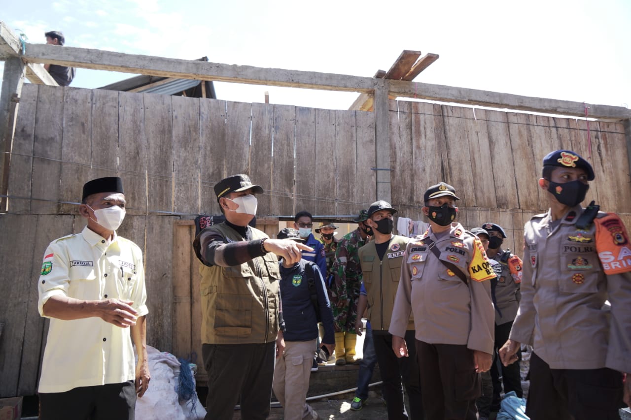 Dalam kunjungan tersebut, Basmin menyerahkan langsung bantuan logistik dan menginstruksikan pada Dinas Perumahan dan Kawasan Permukiman untuk segera membenahi rumah warga yang terdampak.