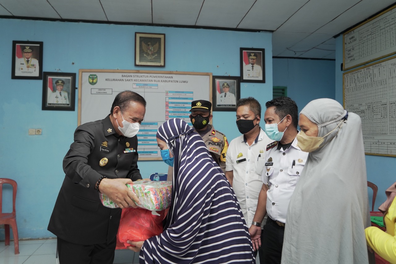 LUWU, JURNALSULSEL.COM – Bupati Luwu, Dr H Basmin Mattayang, didampingi oleh Kepala Pelaksana BPBD, Rahman Mandaria, Kasatpol PP, Andi Iskandar dan Camat Bua, Satti Latief menyerahkan bantuan logistik kepada warga terdampak banjir di Kecamatan Bua, Kamis (23/12/2021)