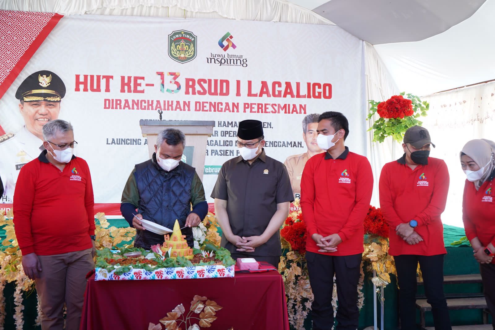 JURNALSULSEL.COM, LUWU TIMUR—Bupati Luwu Timur, H. Budiman meresmikan Gedung Rawat Inap 1 kamar 1 Pasien RSUD I Lagaligo dan Gedung Kamar Operasi/Unit Bedah Launching Layanan Pengantaran Pasien Pasca Rawat Inap, serta Launching Aplikasi RSUD I Lagaligo Dalam Genggaman yang ditandai dengan penekanan tombol serine dan pemotongan nasi tumpeng, yang dirangkai dengan HUT RSUD I Lagaligo ke-13, pada Rabu (02/02/22).