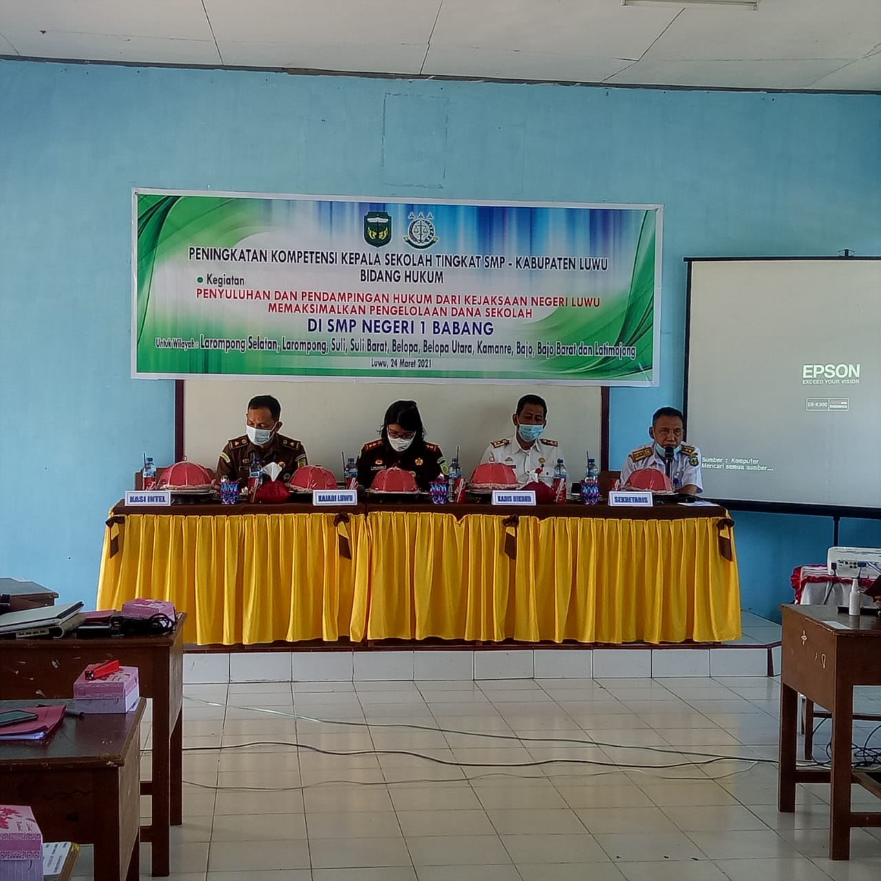 — Musyawarah kerja kepala sekolah (MKKS) SMP kabupaten Luwu, menggelar penyuluhan dan pendampingan hukum dengan menghadirkan jajaran kejaksaan Negeri Luwu, di SMPN 1 Babang, Rabu 24 Maret 2021.