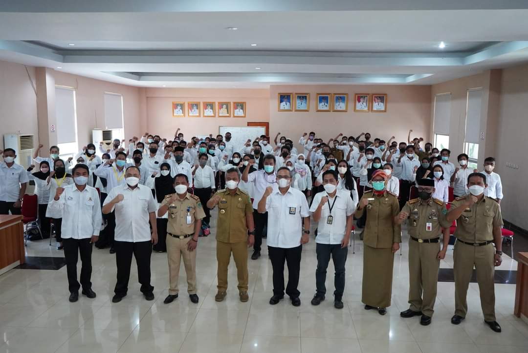 JURNALSULSEL.COM, LUWU TIMUR—Senin 6 Desember 2021 Kementerian Pekerjaan Umum dan Perumahan Rakyat Direktorat Jenderal Bina Konstruksi Balai Jasa Konstruksi Wilayah VI Makassar bekerjasama Dinas Pekerjaan Umum dan Penataan Ruang Kabupaten Luwu Timur melaksanakan Bimbingan Teknis Sistem Manajemen Keselamatan Konstruksi (SMKK) yang berlangsung di Aula Sasana Praja Kantor Bupati Luwu Timur, Desa puncak indah, Malili, Luwu Timur, Sulsel.