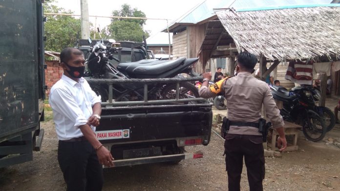 Setelah petugas tiba di TKP, petugas langsung membongkar arena perjudian dan selanjutnya menyisir di sekitar pemukiman warga dan melakukan interogasi kepada warga sehingga dalam hal ini di temukan adanya 3 (tiga) unit sepeda motor yang di duga keras adalah milik dari para pelaku dan kemudian di amankan.