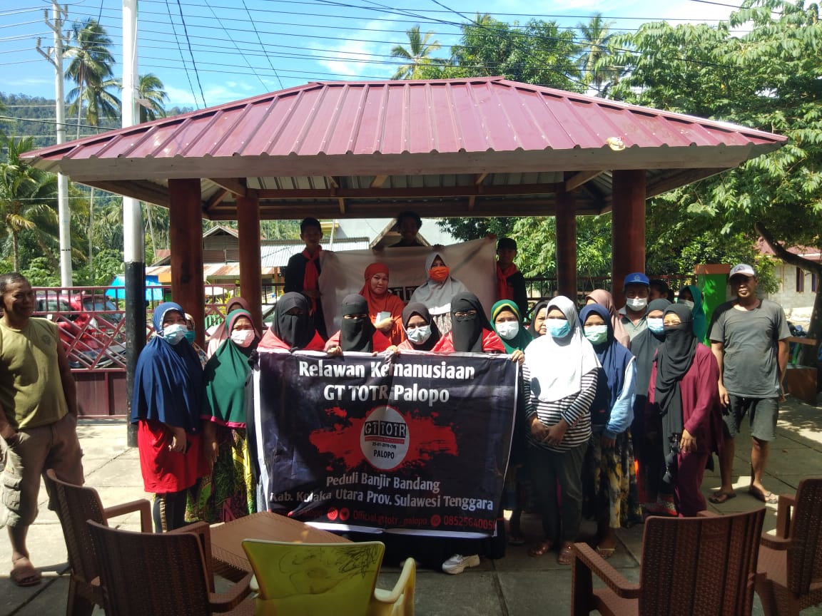 KOLAKA UTARA — Gerakan Tanggap Taklim On the Road (GT-TOR) Palopo, Menyalurkan Bantuan kepada korban banjir bandang di Kolaka Utara, Senin (28/12/2020).