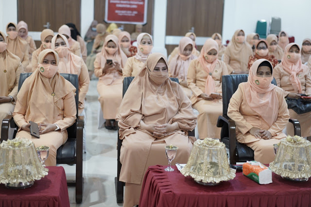 Hadir pula pada acara pengukuhan pengurus DWP, Ketua TP-PKK Kabupaten Luwu, Hj Hayarna Basmin.