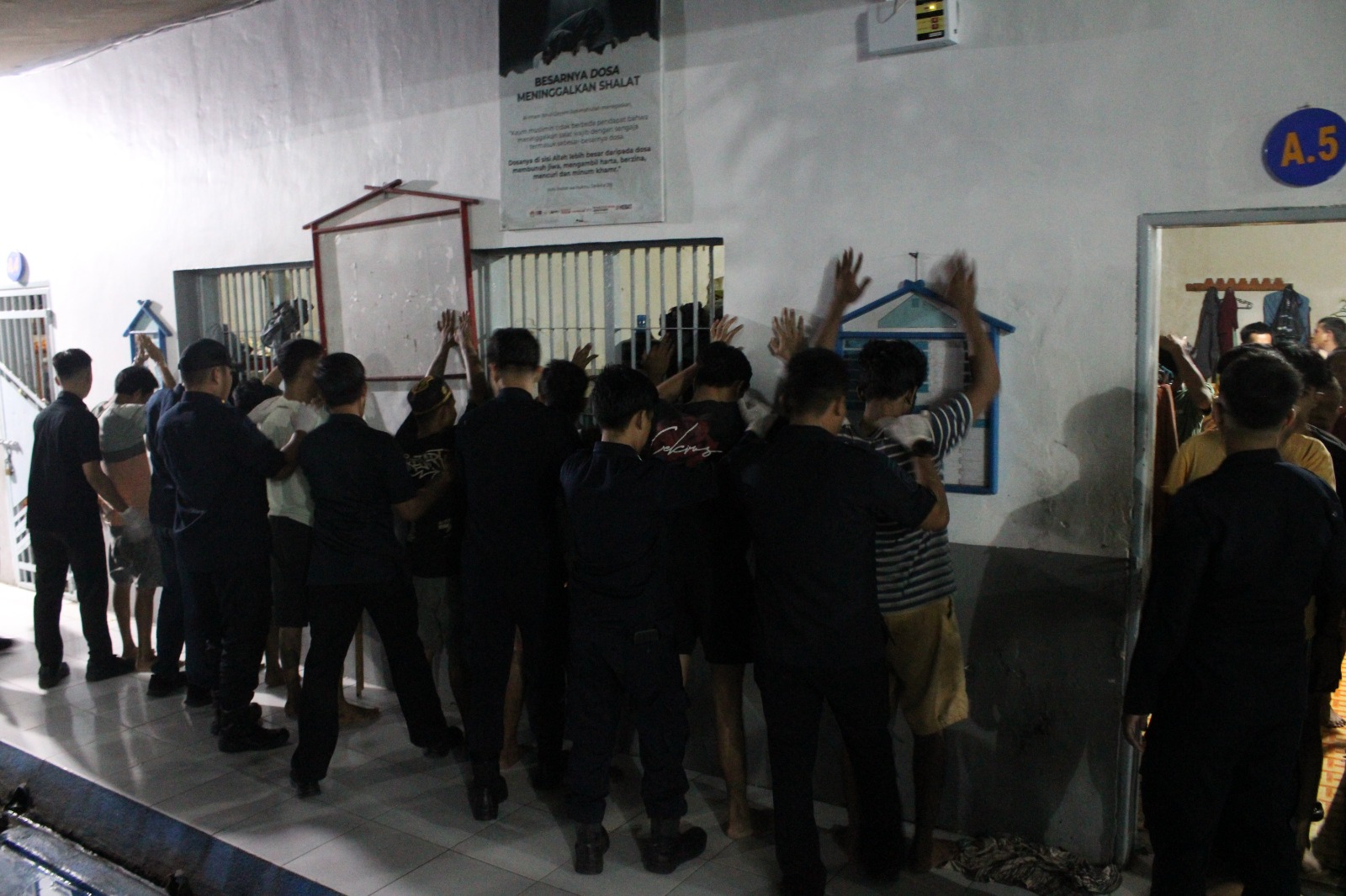 Petugas melakukan penggeledahan badan terhadap warga binaan secara menyeluruh, kemudian dilanjutkan dengan pemeriksaan barang-barang di dalam kamar hunian.