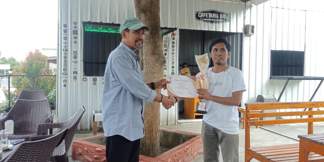 | Ketua Yayasan Negeri Pelepah Sagu Luwu Menyerahkan Hadiah Kepada Pemenang Lomba Menulis Esai Bertema Sagu |