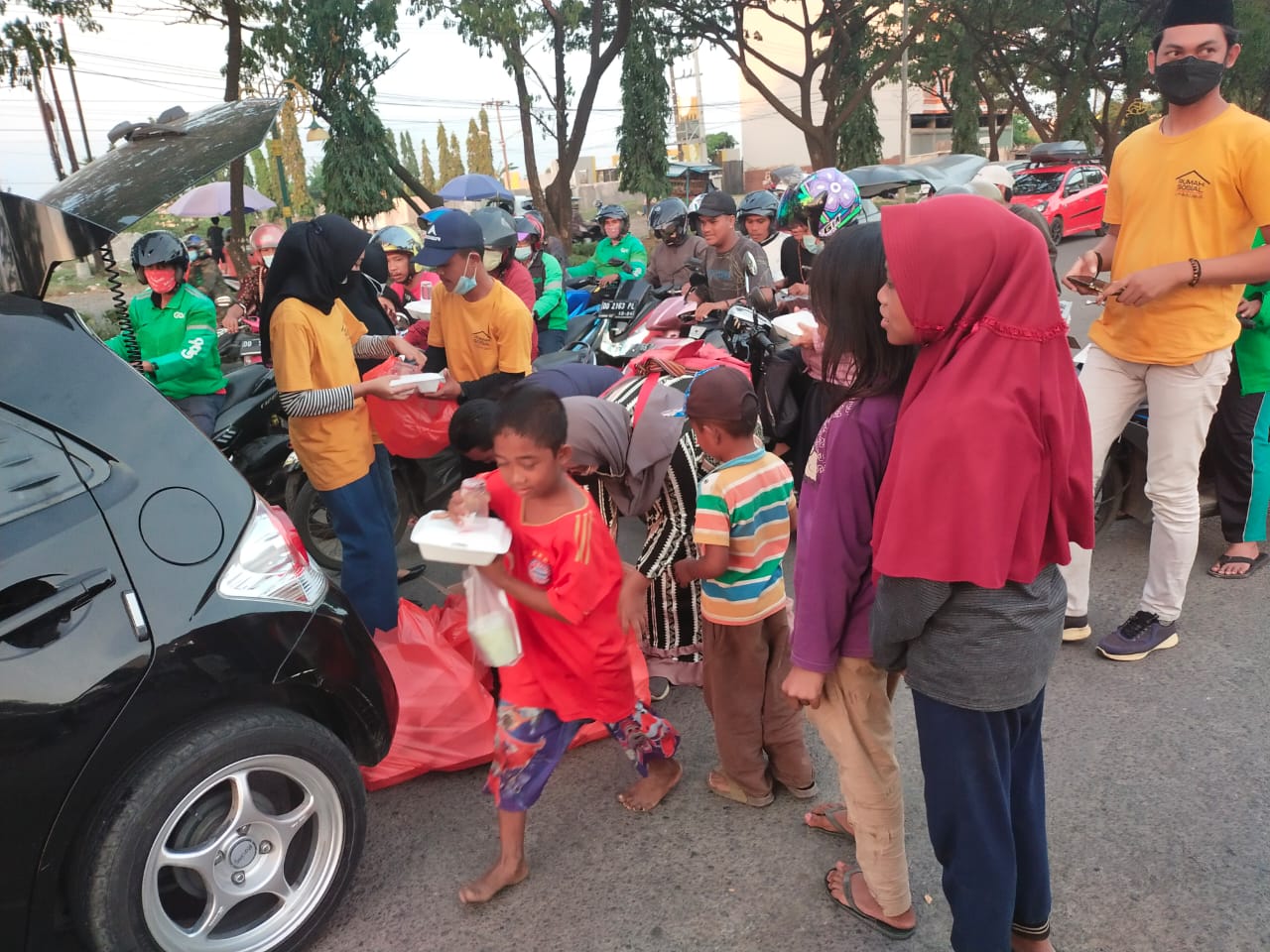 Komunitas yang  bergerak pada bidang kemanusiaan ini  membagikan makanan dan  minuman kepada mereka  yang membutuhkan, seperti anak-anak jalanan, tukang sapu jalan, tukang becak, dan  pengendara yang melintas.