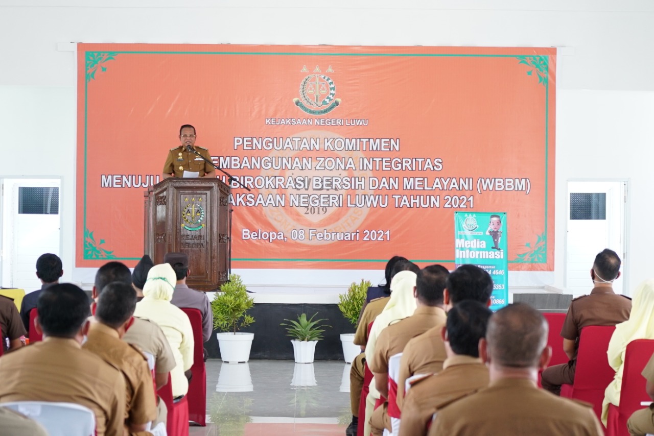 LUWU —Kepala Kejaksaan Negeri Luwu, Erni Veronika Maramba, memotivasi aparatnya untuk meraih predikat zona integritas menuju Wilayah Birokrasi Bersih dan Melayani ((WBBM) tahun 2021.