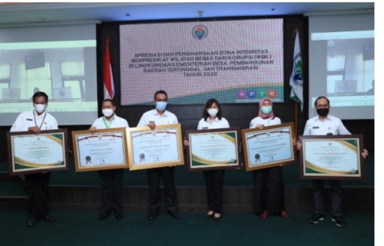 JAKARTA – Kementerian Desa, Pembangunan Daerah Tertinggal dan Transmigrasi (Kemendes PDTT) resmi meraih predikat Zona Integritas Wilayah Bebas dari Korupsi (WBK) dari Kementerian Pemberdayaan Aparatur Negara dan Reformasi Birokrasi (Kemenpan RB)