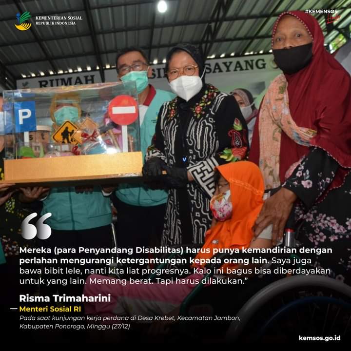 JAKARTA —- Menteri Sosial (Mensos) Risma mengisi aktivitas akhir Pekan dengan melakukan kunjungan kerja perdana di Desa Krebet, Kecamatan Jambon, Kabupaten Ponorogo, Minggu (27/12).