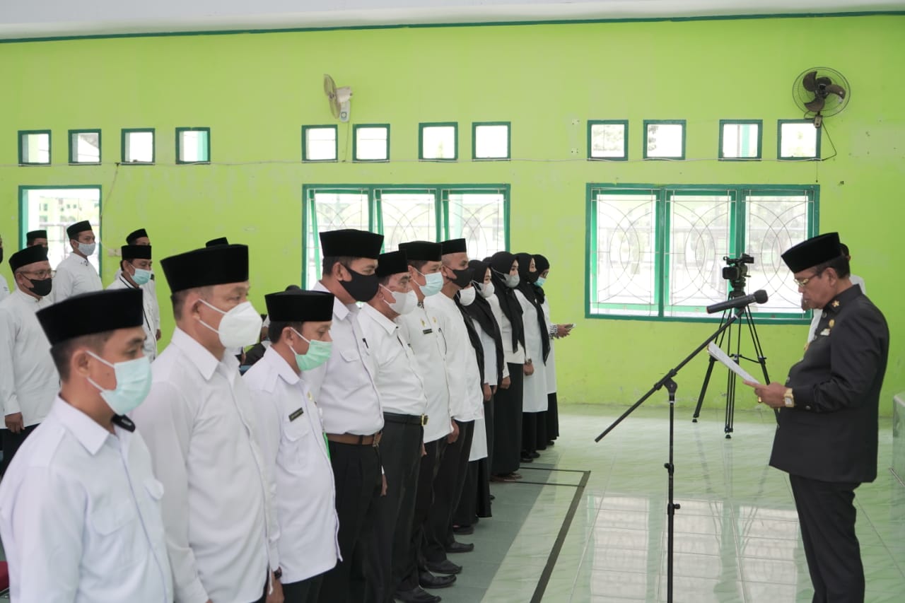 LUWU, JURNALSULSEL.COM—Bupati Luwu, Dr H Basmin Mattayang MPd melantik pengurus Lembaga Pengembangan Tilawatil Qur’an (LPTQ) periode 2021-2025 di Aula Kantor Kemenag, Kamis (23/12/2021)