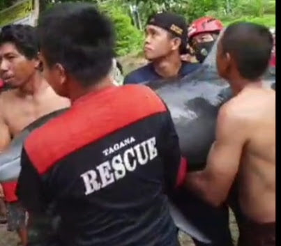 “Dibantu warga setempat, ikan lumba-lumba ini kita evakuasi ke pelabuhan Ulo-Ulo, di sana kita lepaskan ke lait dalam,” kata Fauzan, Jumat 05/02/21.