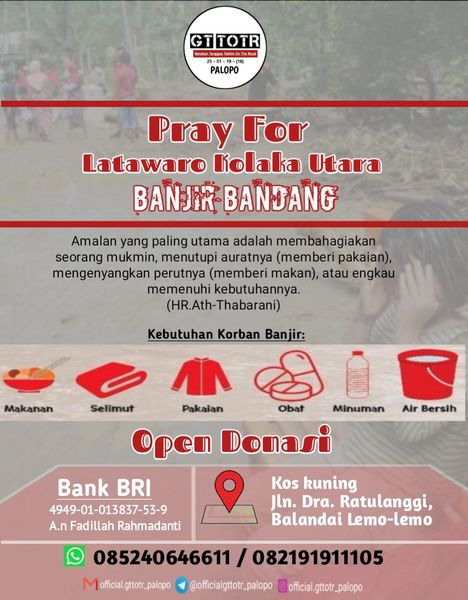 Ketua Wilayah Gerakan Tanggap Taklim On the Road (GT-TOR) Palopo, Arzar menyebutkan bahwa kegiatan ini merupakan aksi kemanusian untuk membantu sesama yang menjadi korban bencana banjir bandan di kabupaten Kola Utara.