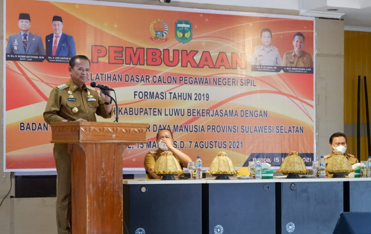 Kegiatan tersebut dihadiri oleh Bupati kabupaten Luwu Dr. H. Basmin Mattayang, Sekretaris Kabupaten Luwu H Sulaiman , Kepala Badan pengembangan sumber daya manusia provinsi Sulawesi Selatan Drs. H. Asri Sahrun said , serta beberapa calon pegawai negeri sipil yang hadir secara langsung dan juga beberapa hadir secara virtual.