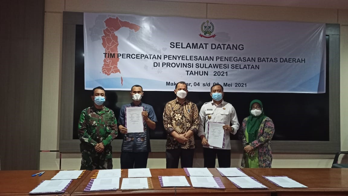 MAKASSAR, JURNALSULSEL.COM — Tim Penegasan Batas Wilayah yang dipimpin langsung oleh Asisten I Bidang Pemerintahan dan Kesra, Rudi Dappi, Kepala Bappelitbangda, Ahmad Awwabin, Kabag pemerintahan, Enrika, dan kabid RR BPBD Kosmas Toding, mengikuti rapat koordinasi Sinkronisasi dengan Kemendagri yang difasilitasi oleh Pemerintah Provinsi Sulawesi Selatan (Sulsel) di kantor Gubernur Provinsi Sulsel di Makassar, Senin-Kamis (3-6 Mei 2021)