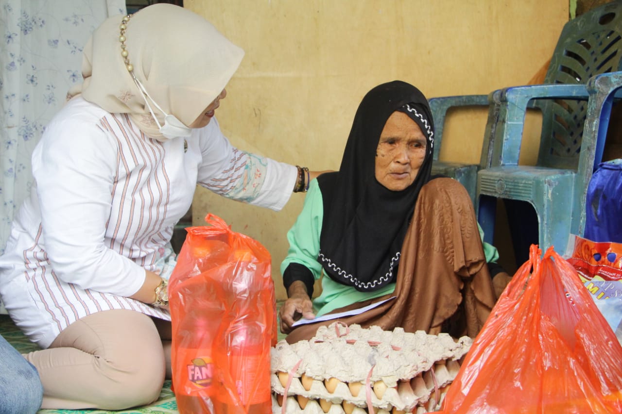 Dalam kesempatan itu Fadriaty Asmaun memberikan bantuan Sembako dan Uang Tunai terhadap 2 keluarga yang kurang mampu tersebut.