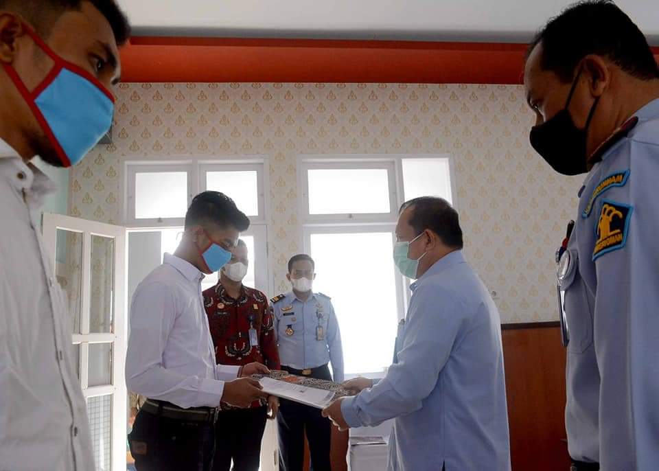 Kepala Kantor Wilayah Kementerian Hukum dan HAM Sulawesi Selatan memberikan Remisi Khusus (RK) Natal Tahun 2021 kepada 13 Warga Binaan pemeluk ajaran kristen dan katholik pada perayaan natal di Rutan Kelas I Makassar, Jumat (25/12/2020).