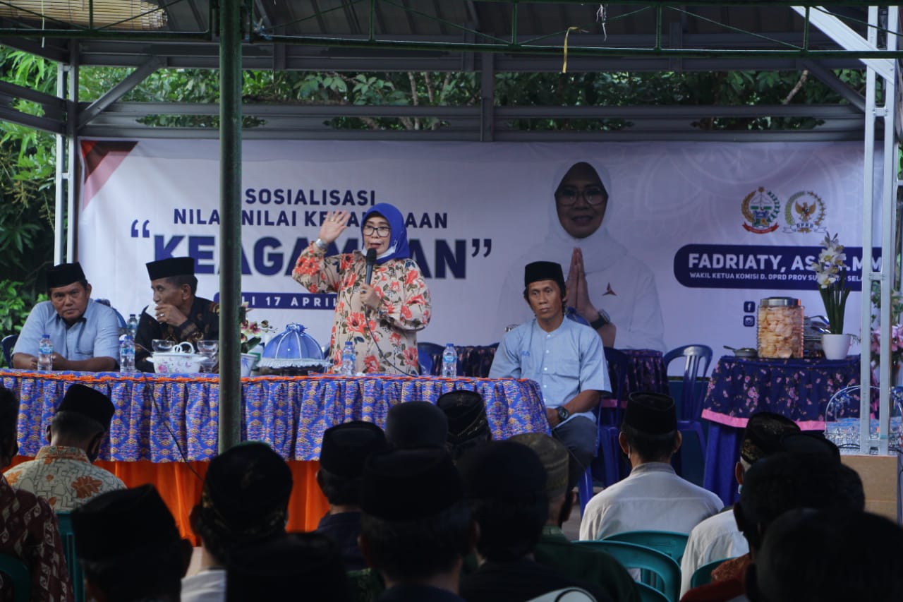 LUWU, JURNALSULSEL.COM — Anggota DPRD Provinsi Sulawesi Selatan Fadriaty As, gelar Sosialisasi Nilai-nilai Kebangsaan dengan tema ‘Keagamaan’ di Kelurahan Suli Kecamatan Suli Kabupaten Luwu 17 April 2021.