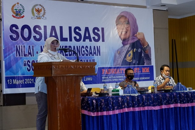 Luwu, JURNALSULSEL.COM — Wakil ketua komisi D, DPRD Provinsi Sulawesi Selatan, Fadriaty sosialisasikan nilai-nilai kebangsaan dengan tema solidaritas sosial kepada masyarakat Luwu, pada Sabtu, (13/3/2021) siang.