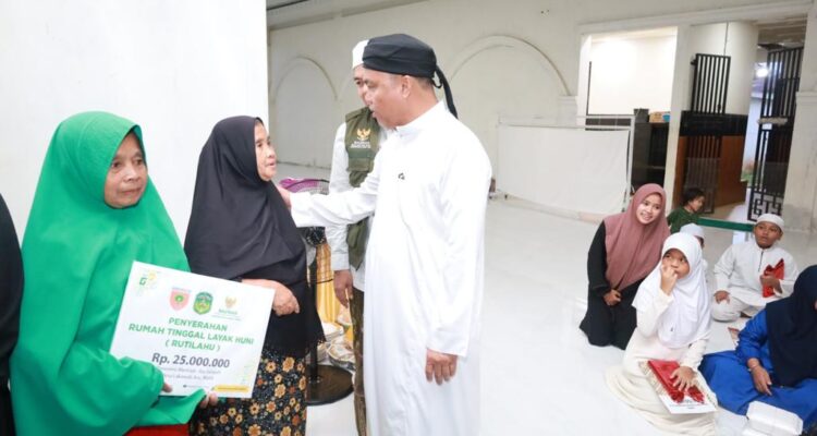 JURNALSULSEL.COM, LUWU TIMUR–Bupati Luwu Timur, H. Budiman menyerahkan satu paket Bedah Rumah