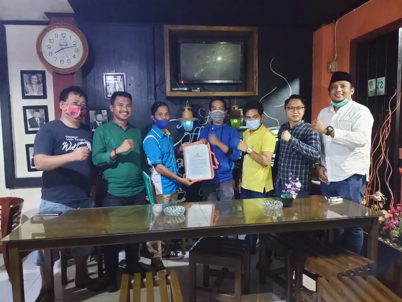 Ket: Amrillah Todewi (kuning) bersama tim saat mengembalikan formulir pendaftaran calon Ketua DPD II KNPI Luwu Utara periode 2020-2023.